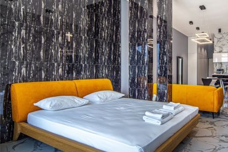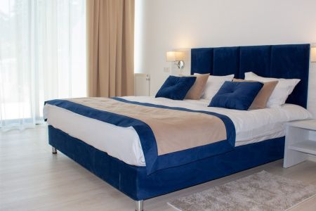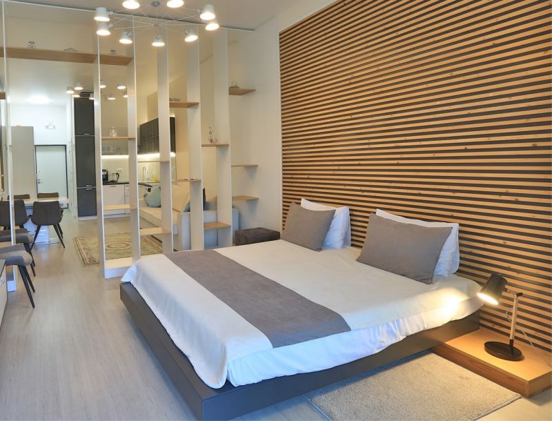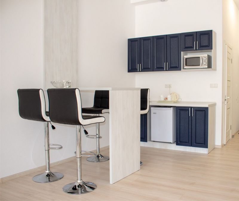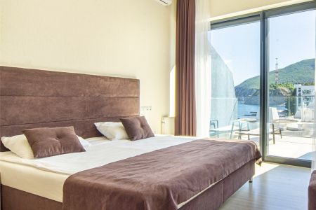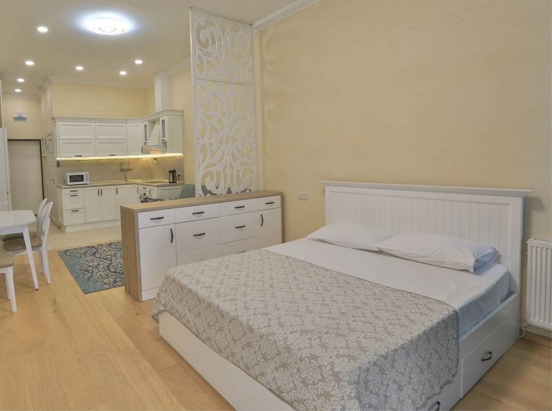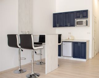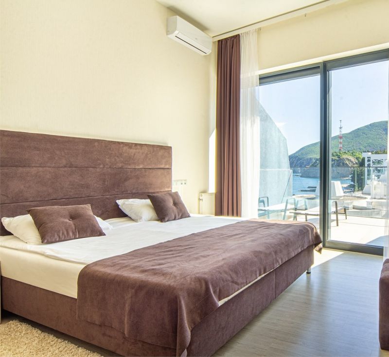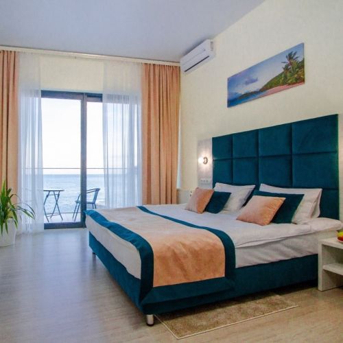 Номера разного уровня комфорта и вместимости расположились в современном 9-этажном корпусе с лифтом. Комнаты оборудованы современной мебелью, телевизором, кондиционером. Есть небольшая терраса и панорамные окна. Санузел индивидуальный, с душем, полотенцами, халатами, тапочками, косметическими принадлежностями и феном. В некоторых номерах предусмотрены стиральная машина и гладильные принадлежности. Для самостоятельного приготовления еды обустроена кухонная зона с необходимым оборудованием.